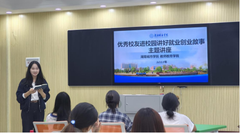 (通讯员:曹晶晶 周英豪) 10月20日晚,我院在第三教学楼204教室开展“优秀校友进校园讲就业创业故事”主题讲座,帮助同学们解开前途上的困惑,理清职业方向。本次讲座特邀我校2024届优秀校友、湖南省第九届师范生教学技能竞赛一等奖获得者张丹丹作为主讲人。她结合自己备赛获奖的经历、初入职场的从教实践故事,分享了自己的逐梦执教路。