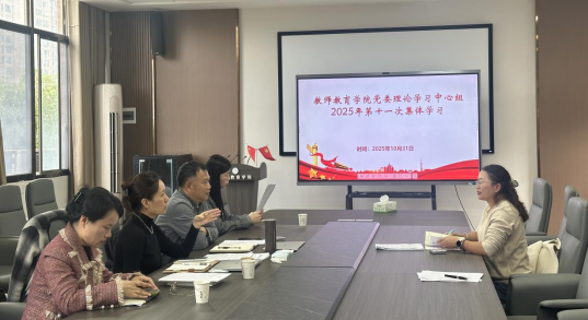 (通讯员:章港)10月31日上午10点,教师教育学院党委理论学习中心组在3教209会议室举行2025年第十一次集体学习。本次学习围绕“深入学习‘十五五’规划建议及全面深化改革相关精神”展开,由学院党委书记王琦主持,党委理论学习中心组全体成员参与。