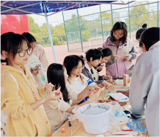 活动还吸引了展台周边众多观众自发参与,现场文化体验氛围浓厚。多名学生在完成作品后主动展示创作成果,心理部成员通过镜头记录了每一个精彩瞬间。五颜六色的书签与灿烂的笑容相互映衬,共同构成一幅生动热烈的校园文化图景。